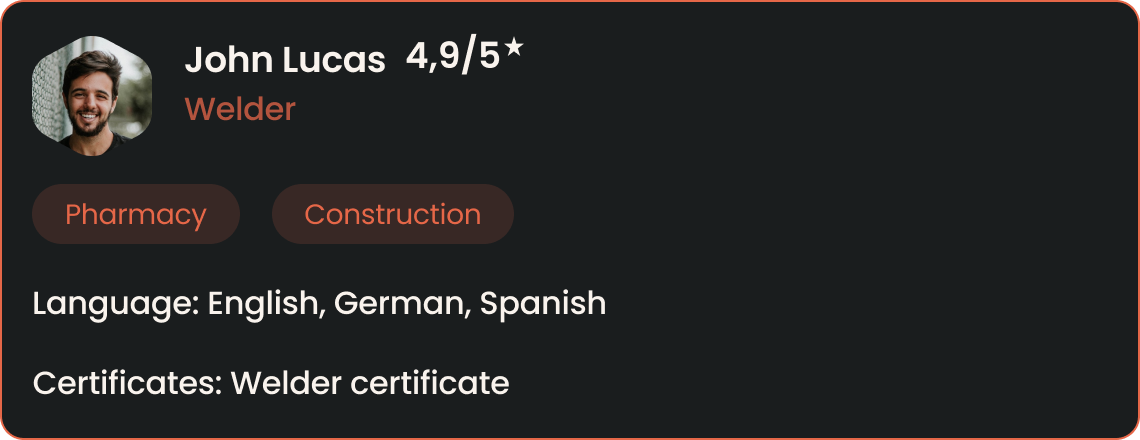 The Worker Database gives companies direct access to a wide range of professional profiles. With advanced filtering and search options, your company can quickly connect with qualified workers who match your project needs.
